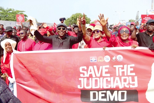 A coalition of opposition political parties, led by the New Patriotic Party (NPP), took to the streets on Monday in a bold protest against the suspension of Chief Justice Gertrude Torkornoo. The demonstration, organized under the theme “Article 21 Demo,” condemned the move as a dangerous assault on judicial independence and a violation of constitutional governance.