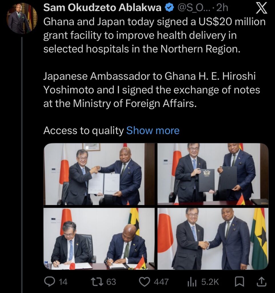 Ghana and Japan have deepened their bilateral ties with the signing of a $20 million grant facility to improve healthcare delivery in selected hospitals across Ghana’s Northern Region.
